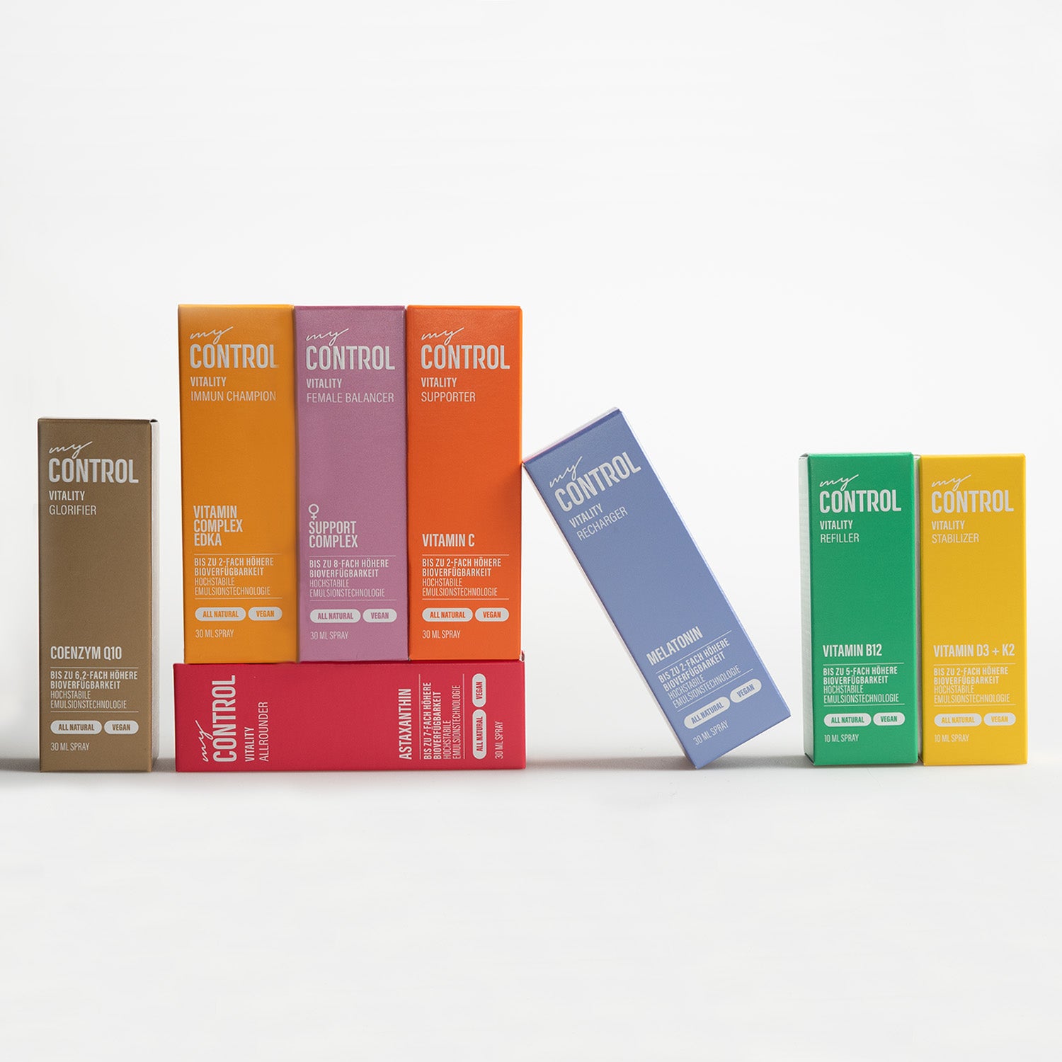 Alle streben nach einem natürlichen und ausgewogenen Lebensstil mit gesunder Ernährung und ausreichend Vitaminen. Doch ein hektischer Alltag mit zahlreichen Verpflichtungen lässt vielen Menschen nicht genug Zeit, um sich intensiv mit ihrer Gesundheit zu beschäftigen. Bei my Control® helfen wir dir, die Kontrolle über dein Wohlbefinden selbst in die Hand zu nehmen. Entdecke unsere innovativen Nahrungsergänzungsmittel-Sprays mit maximaler Bioverfügbarkeit und fühle dich rundum wohl in deinem Körper.